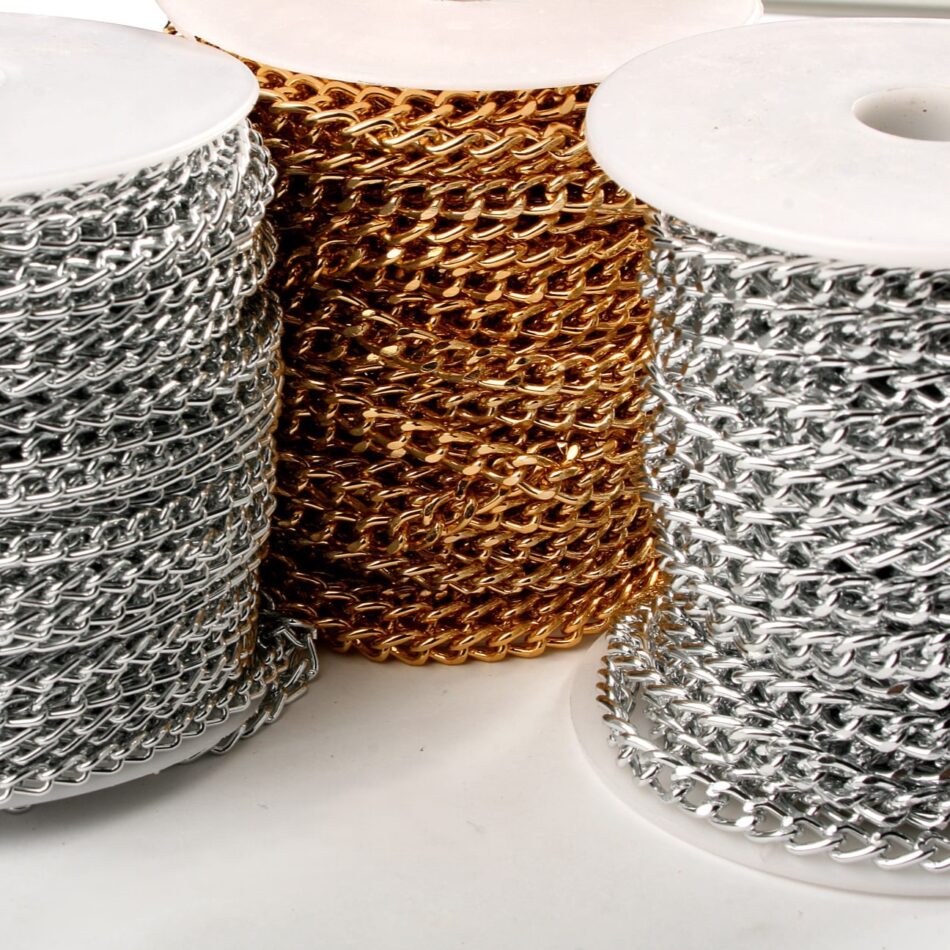 Seguir comprandoCadenas en rollo, dorada o plateada.