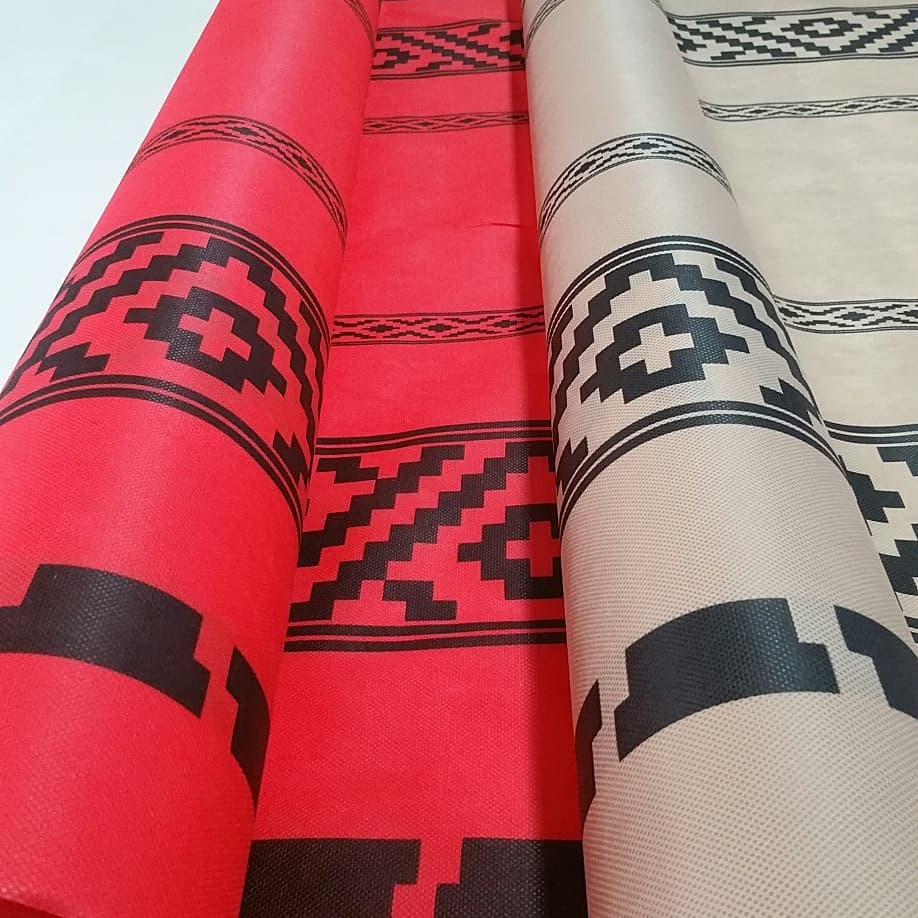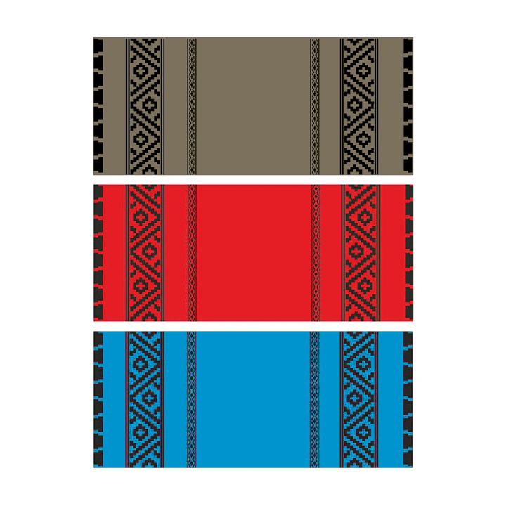Estampado Poncho con guarda pampa es el diseño ideal para celebrar las fiestas patrias. En fondo rojo, beige y celeste bandera.